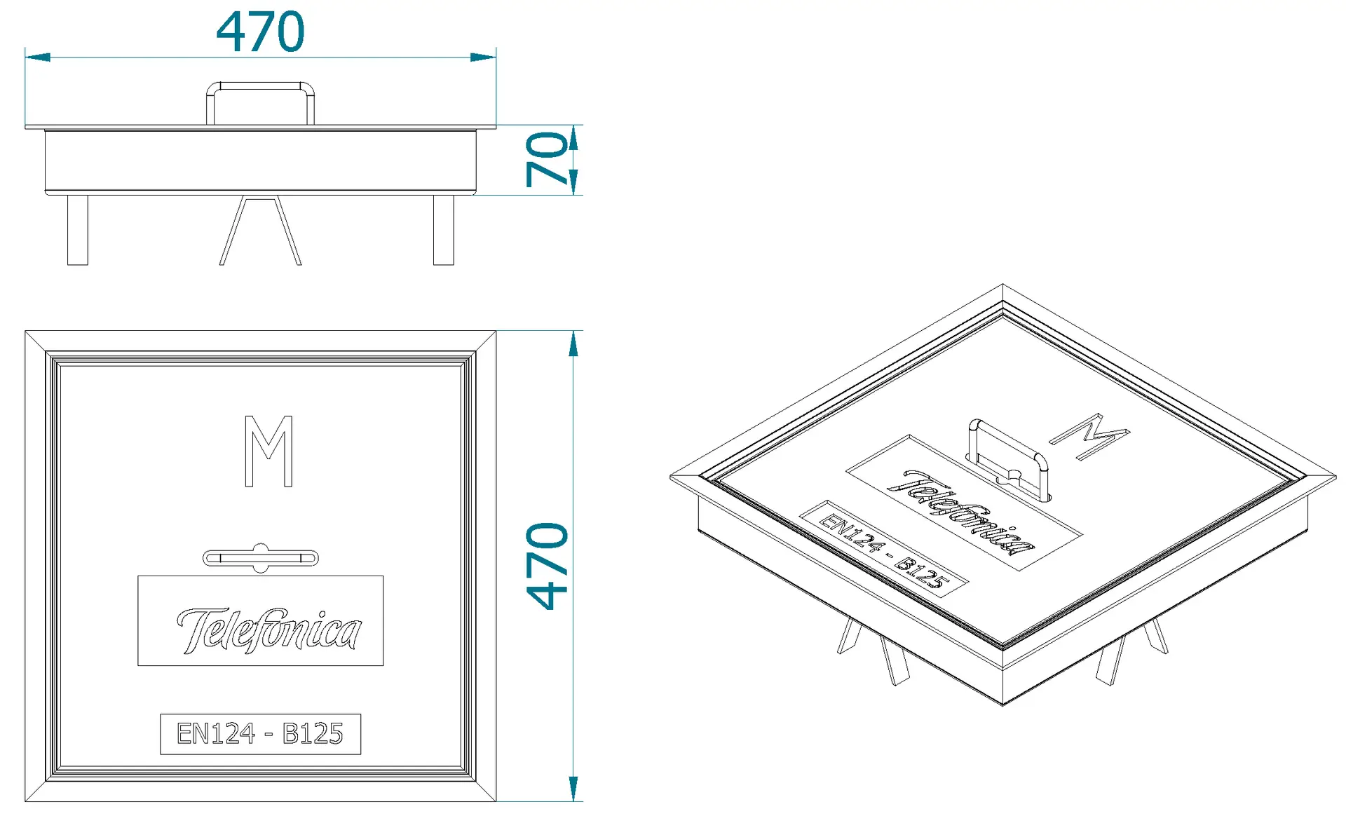Tapa Telefónica tipo M | 411 x 411 x 60 | 470 x 470 x 70 | 37,85 | 30 | – |