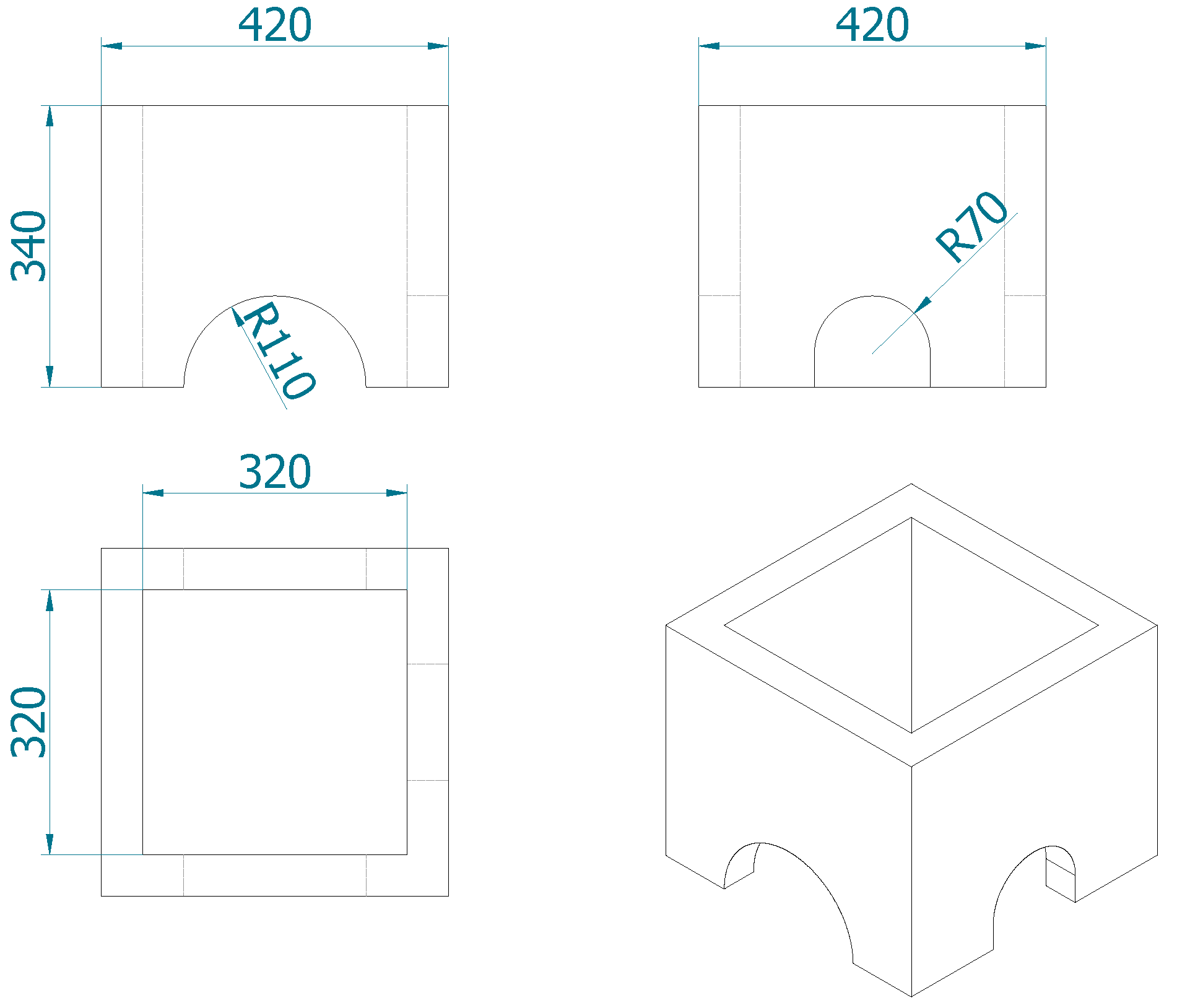 Arqueta Alumbrado sin fondo | 320 x 320 x 340 | 420 x 420 x 340 | 35,00 | 24 | 1.200 x 1.000 x 1.500 |