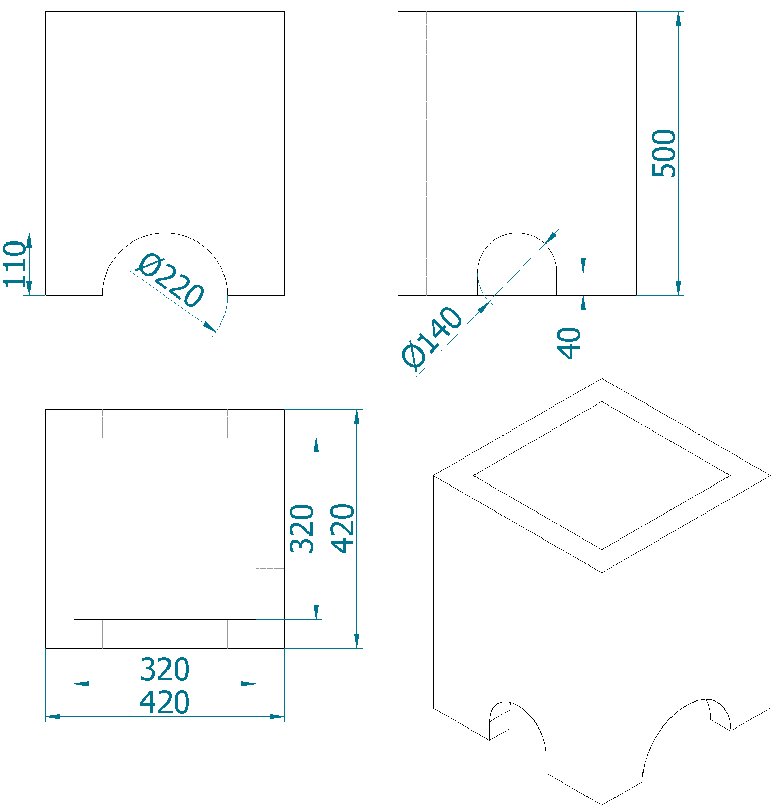 Arqueta sin fondo | 400 x 400 x 640 | 480 x 480 x 640 | 123,00 | 8 | – |