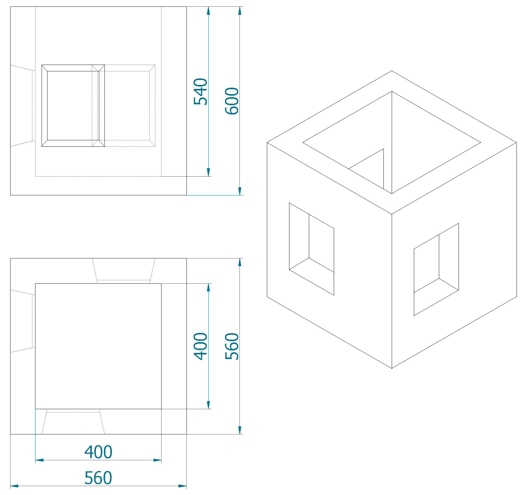 Arqueta con fondo | 400 x 400 x 540 | 560 x 560 x 600 | 237,00 | – | – |