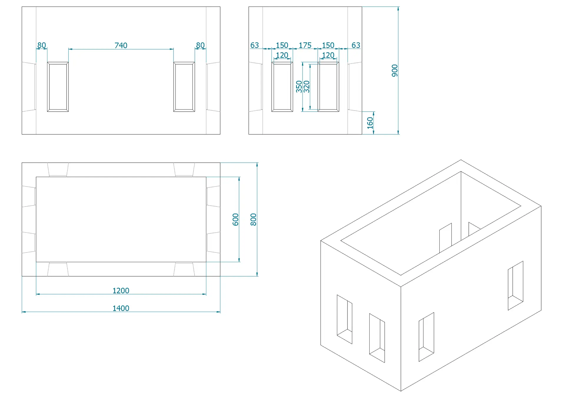 Arqueta ONO sin fondo | 600 x 1.200 x 900 | 800 x 1.400 x 900 | 786,00 | – | – |