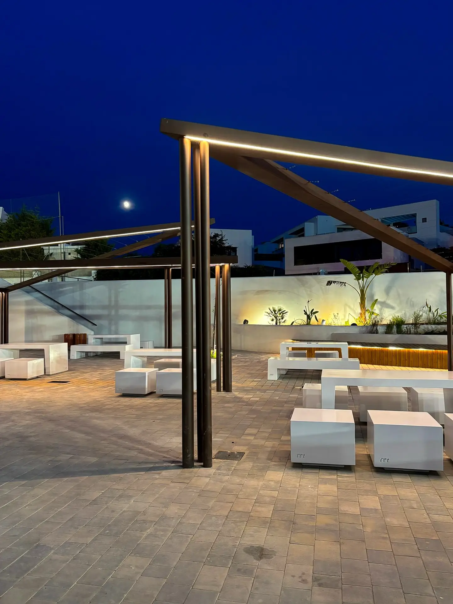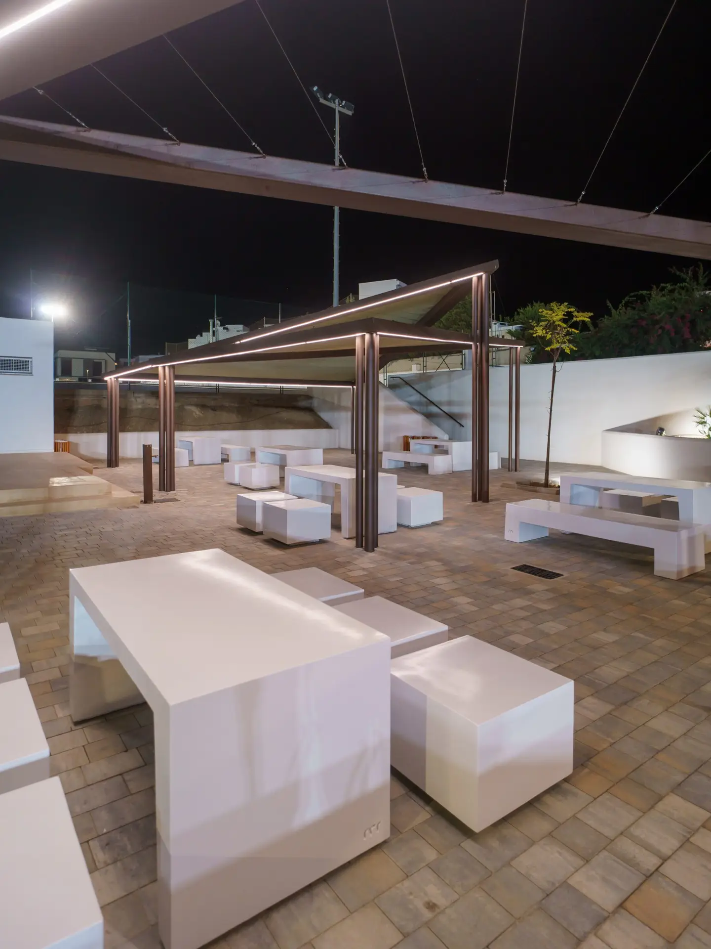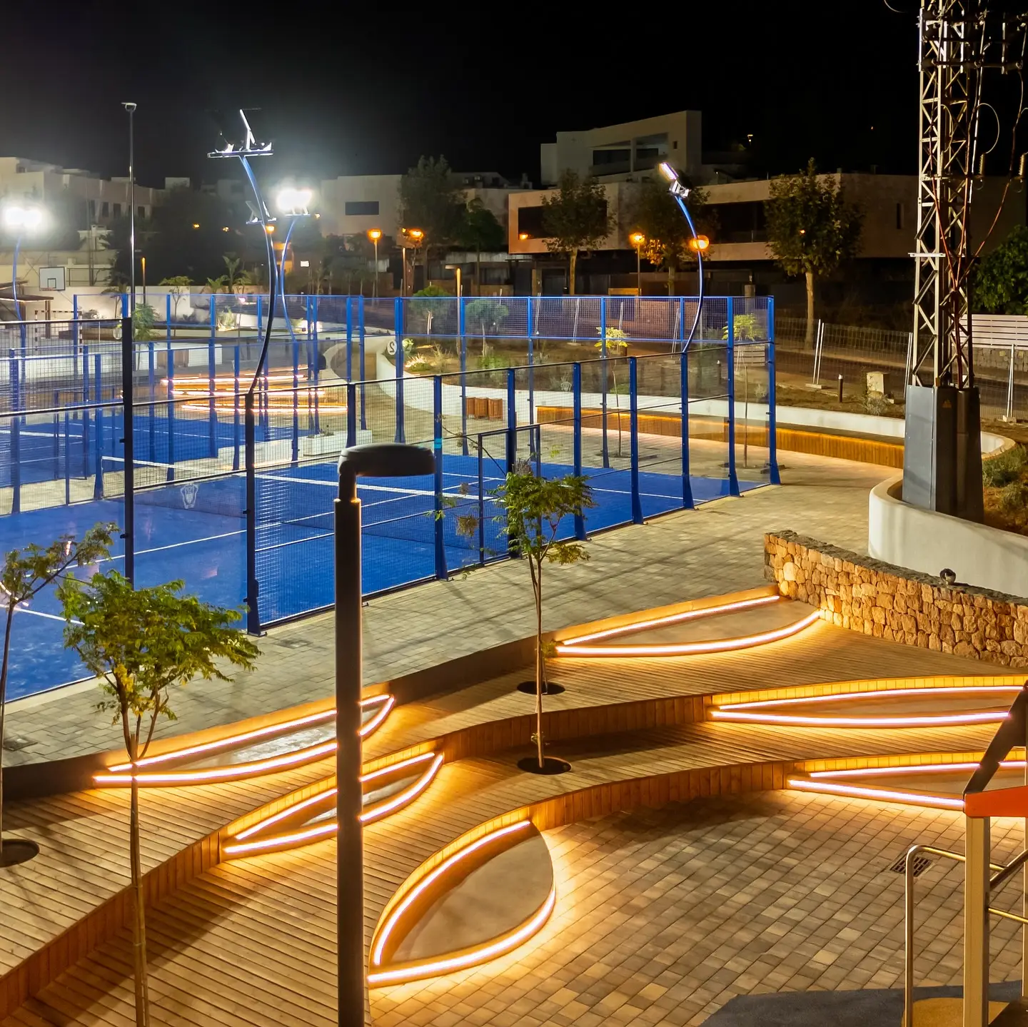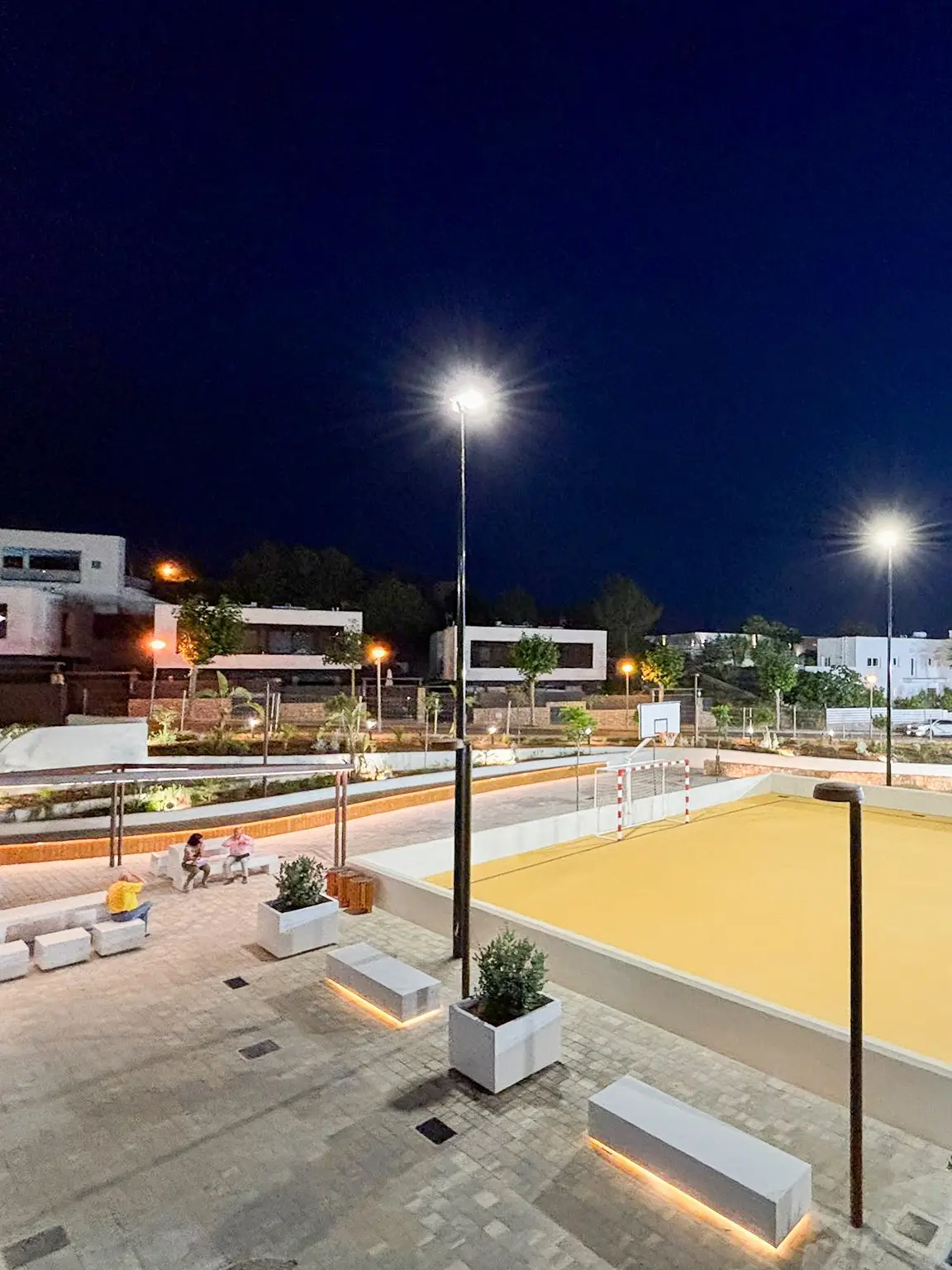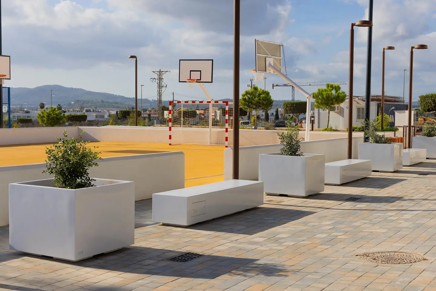 Este espacio, impulsado por el Ayuntamiento de Santa Eulària des Riu, nace con la voluntad de ofrecer a los vecinos de Jesús un entorno moderno, accesible y abierto, que fomente la actividad física y el encuentro social. El complejo se integra de manera natural en el entorno urbano, combinando arquitectura contemporánea, paisaje y sostenibilidad. El diseño, a cargo de Meridia Estudio en colaboración con @danicurreu, apuesta por una arquitectura funcional y amable, que equilibra la estética con la eficiencia constructiva y la integración ambiental. Cada elemento ha sido cuidadosamente seleccionado para aportar durabilidad, bajo mantenimiento y una identidad coherente con la atmósfera mediterránea de la isla.