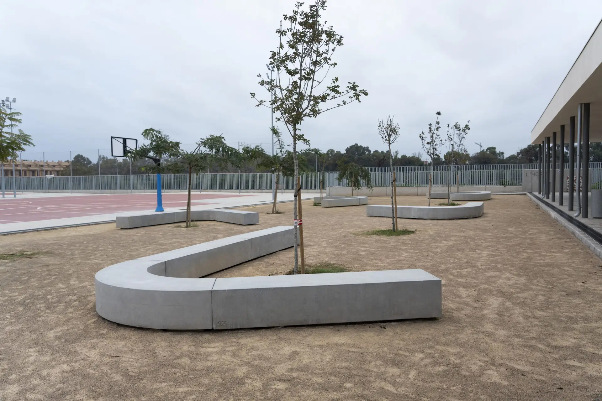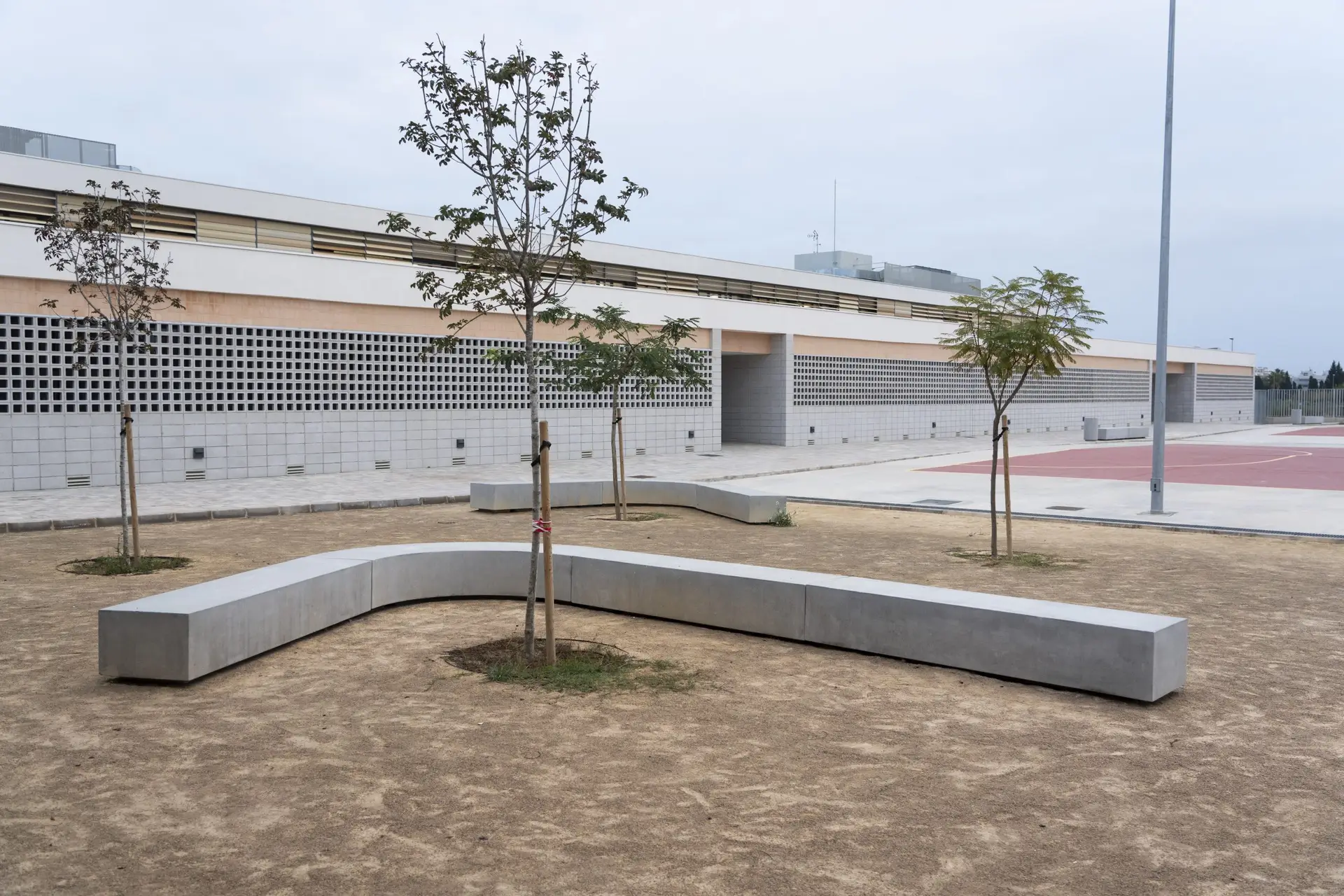 En este proyecto, se han integrado piezas de mobiliario fabricadas con hormigón natural, un material que ofrece una serie de ventajas clave para entornos de uso intensivo. El hormigón, conocido por su extrema resistencia y durabilidad, es ideal para mobiliario urbano, ya que soporta sin problemas las inclemencias del tiempo y el uso constante. Además, su acabado en color natural aporta una estética sobria y moderna, que se armoniza perfectamente con el entorno del instituto y las otras piezas de la gama Taray. La elección de este material refuerza el objetivo del proyecto de crear espacios que no solo sean funcionales, sino también de larga duración y bajo mantenimiento. 🔨💪